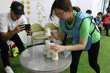 主题团日活动在慷慨激昂的国歌合唱中开始。首先,大家集体观看了二战纪录片,了解战争的残酷与痛苦,体会党和人民一路走来的艰辛与不易。在随后的团体对抗活动中,大家分为两队开展了踩气球、车轮滚滚、袋鼠跳、对推掌、垒杯子接力赛、急速运输和体能障碍赛等对抗项目。比赛中大家充分发挥集体荣誉精神,全力以赴、相互鼓励、拼搏进取,展现出了青年员工的朝气与活力。最后,通过集体绘长卷活动为中国共青团成立100周年献上自己美好的祝福。