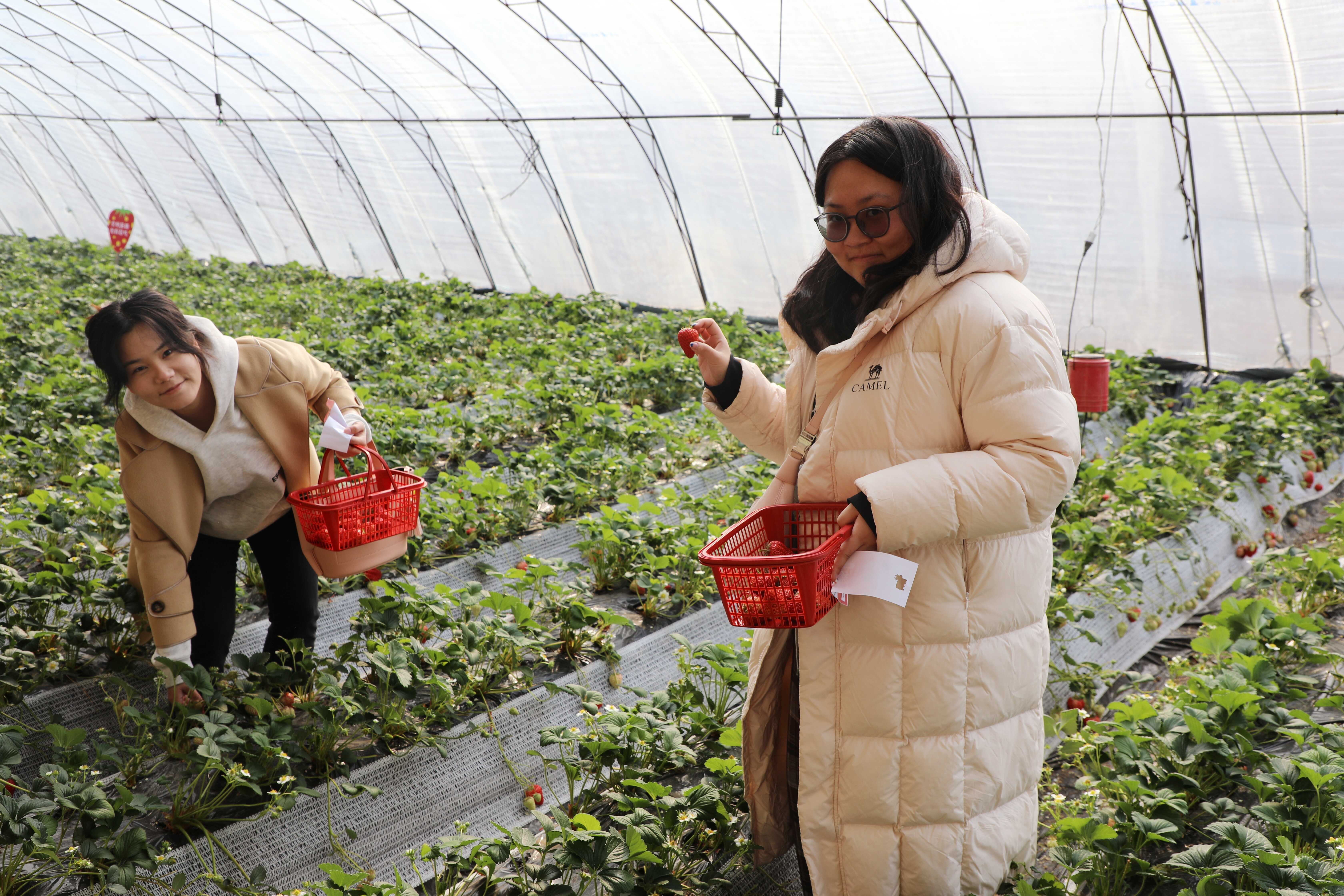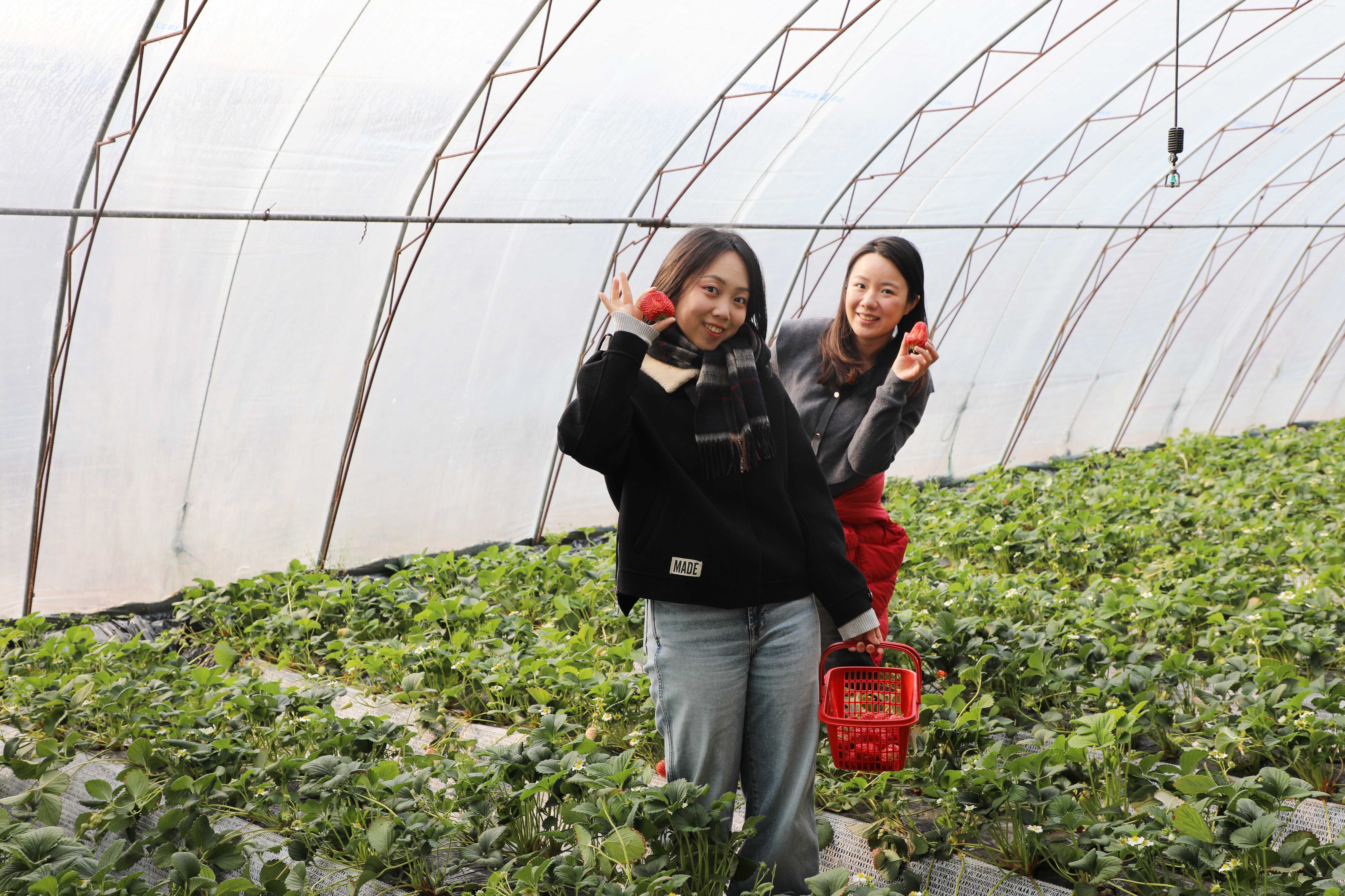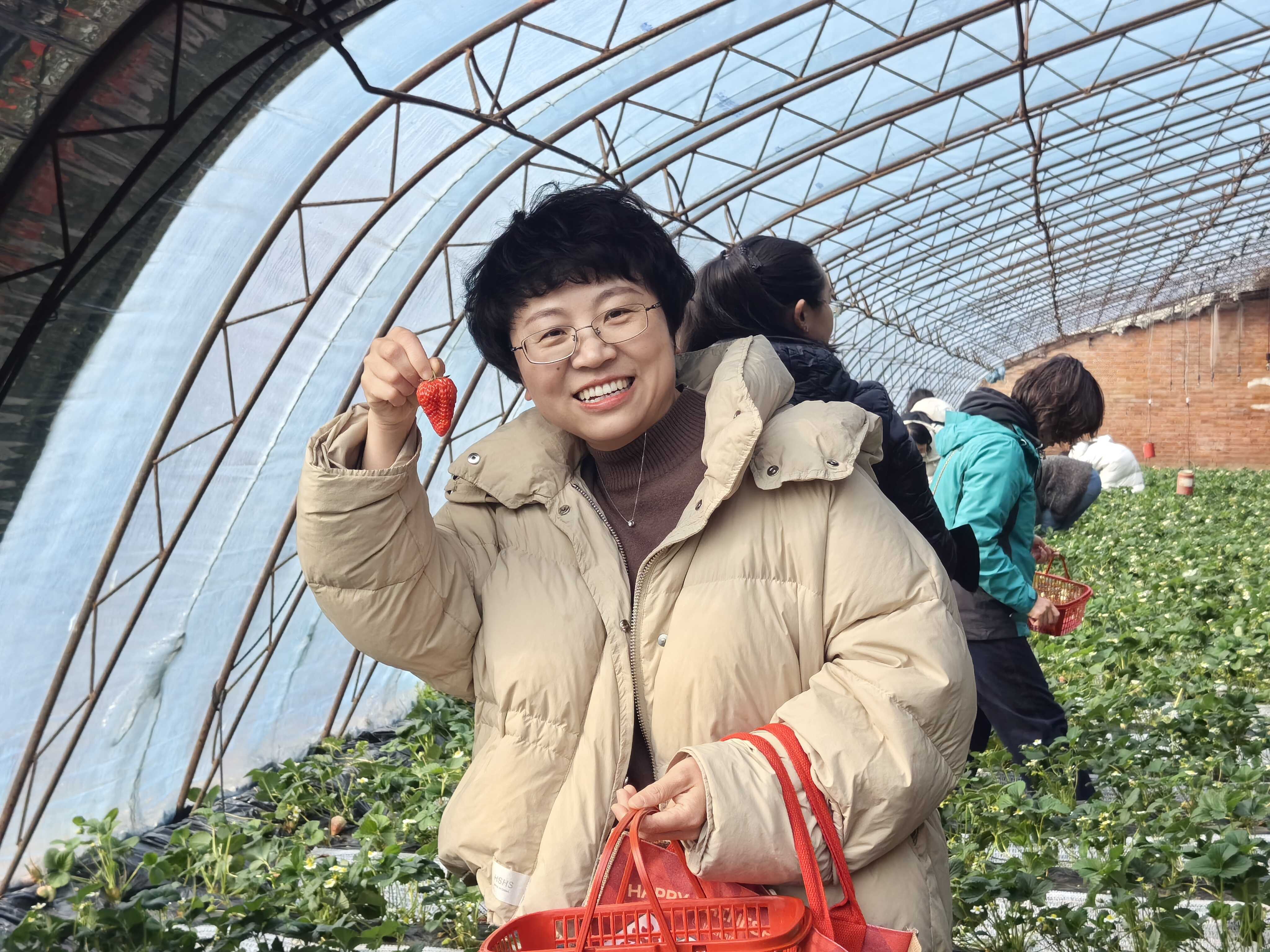 采摘园内,大家三五成群,穿梭在草莓垄间,一边采摘,一边交流着生活与工作中的趣事,气氛轻松融洽。平日里在岗位上严肃认真的她们,此刻脸上洋溢着灿烂的笑容,尽情享受着大自然的馈赠和节日的快乐。
